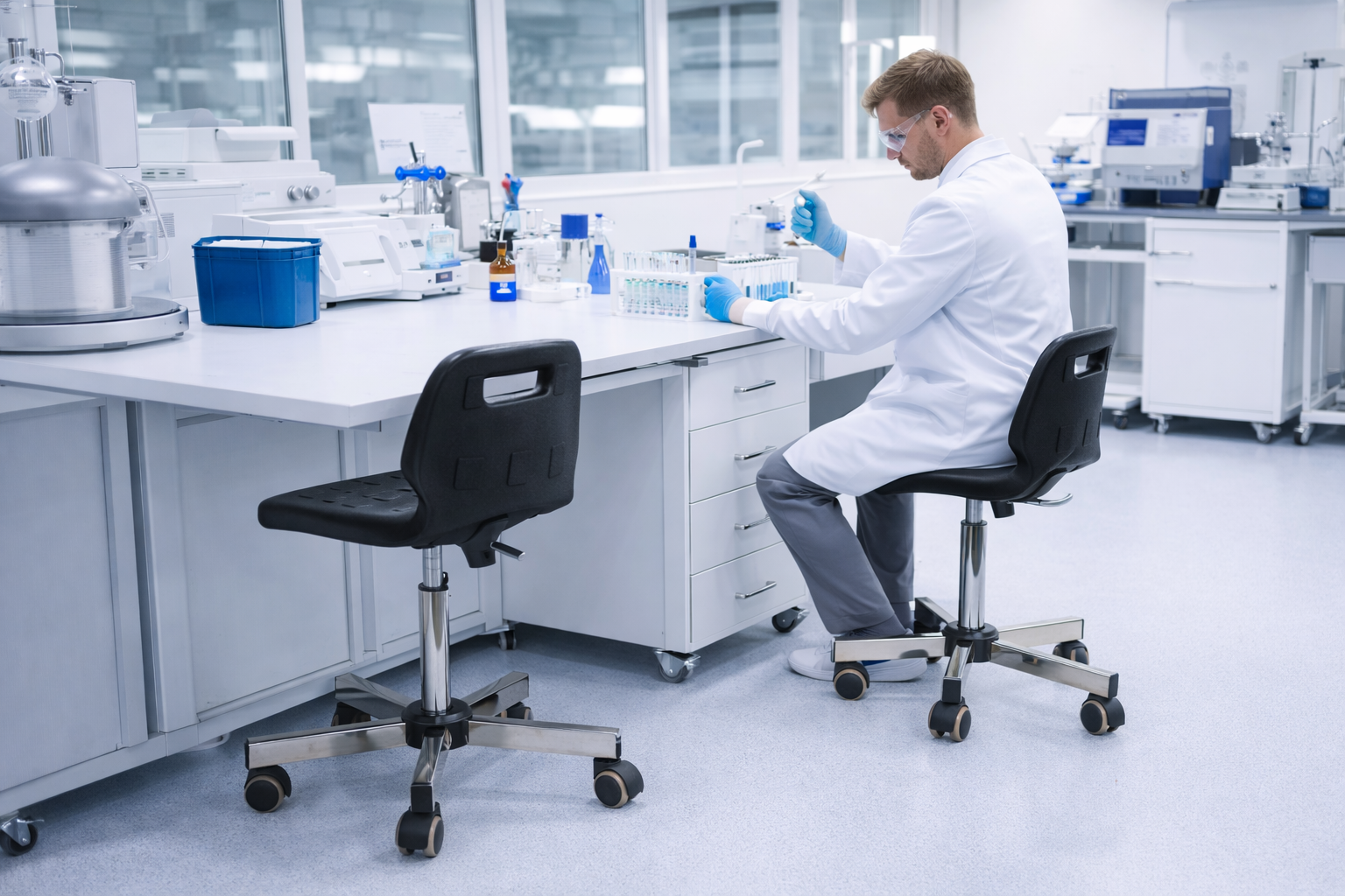 Industrial settings involve exposure to heat, chemicals, and abrasive contact. Traditional seating materials like vinyl or foam degrade quickly in such environments. The industrial polyurethane with chrome foot ring and casters adjustable laboratory chair features a molded polyurethane seat that resists cracking, absorbs no liquids, and remains intact after years of use.